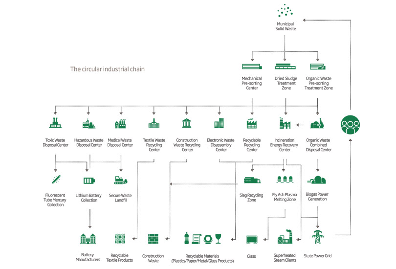 A Circular Economy Industrial Park is a crucial function area for a modern city, and plays an important role in improving the delicacy management level of municipal waste and solving the NIMBY problem.